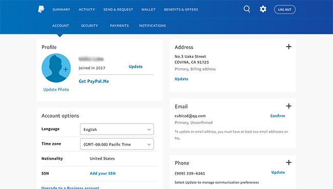 接下来还要绑定银行卡/信用卡及邮箱等信息来完成您的Paypal账户认证   如图所示