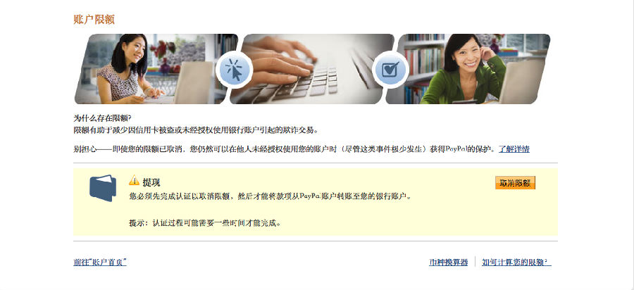 PayPal账号限额解除