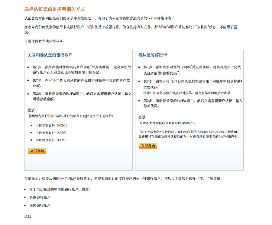 *目前不支持用银联卡来认证PayPal账户。